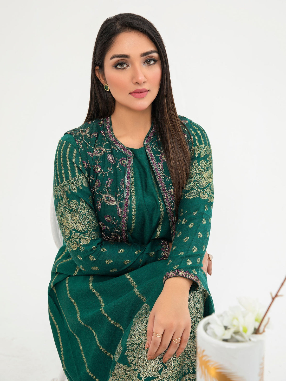 3 Piece Jacquard Suit-Embroidered (Pret)