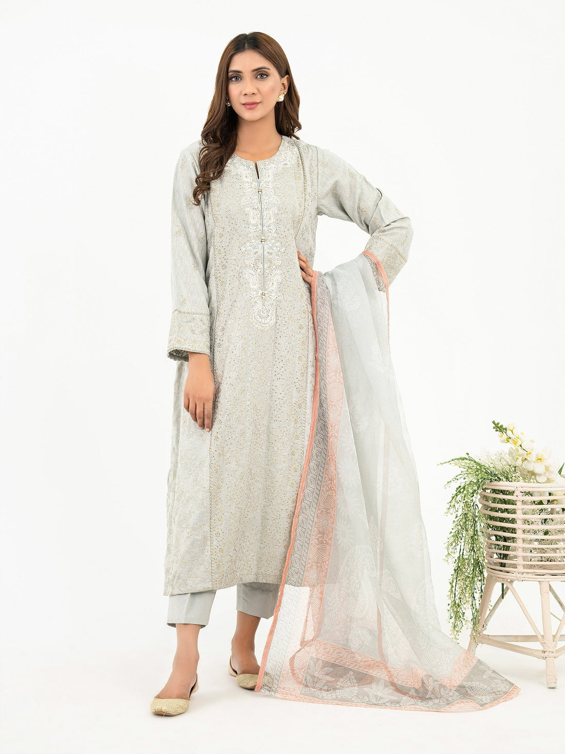 3 Piece Jacquard Suit-Embroidered (Unstitched)