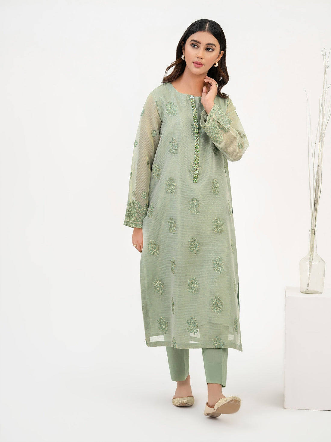 2 Piece Organza Cardigan-Embroidered (Pret)