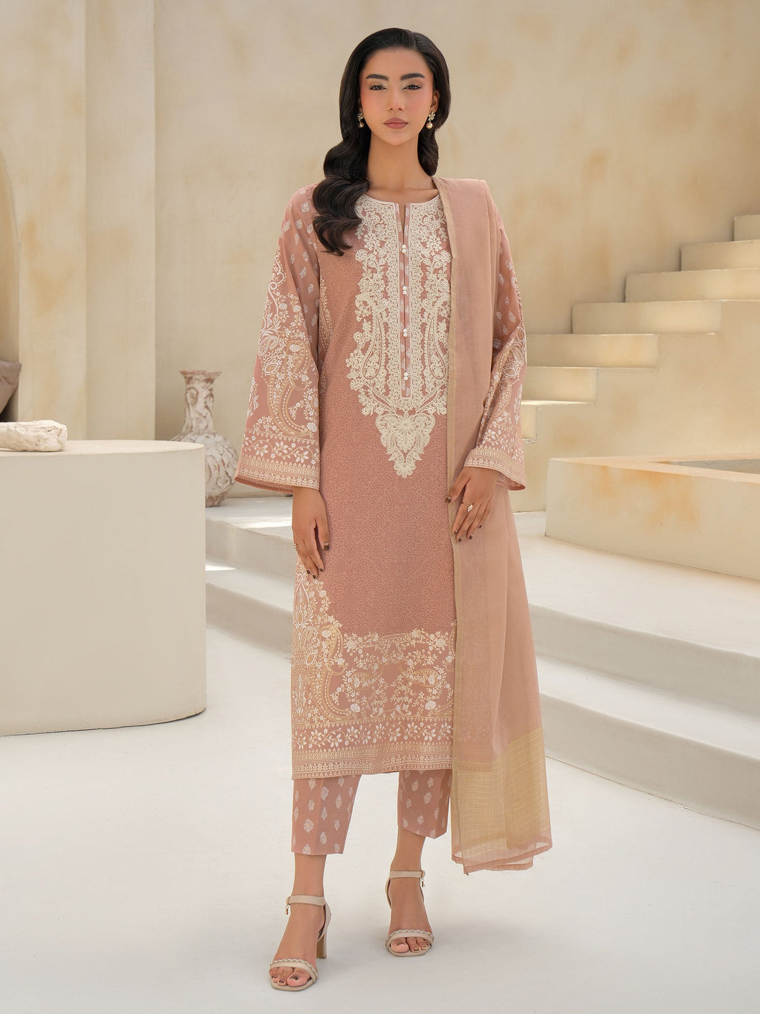 Shirt Paste-print embroidered shirt 1.83 M Fabric: Lawn Dupatta Printed dupatta 2.5 M Fabric: Monar...