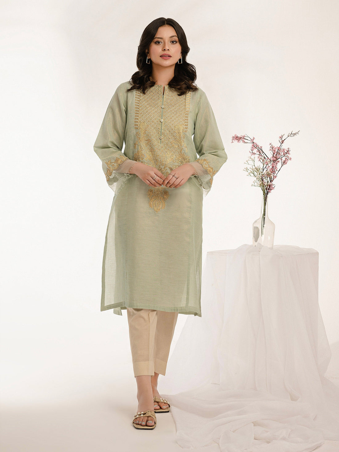 Shirt Dyed embroidered shirt with embellished neckline Fabric: Lawn Other Details Color: Black Weight: 262...