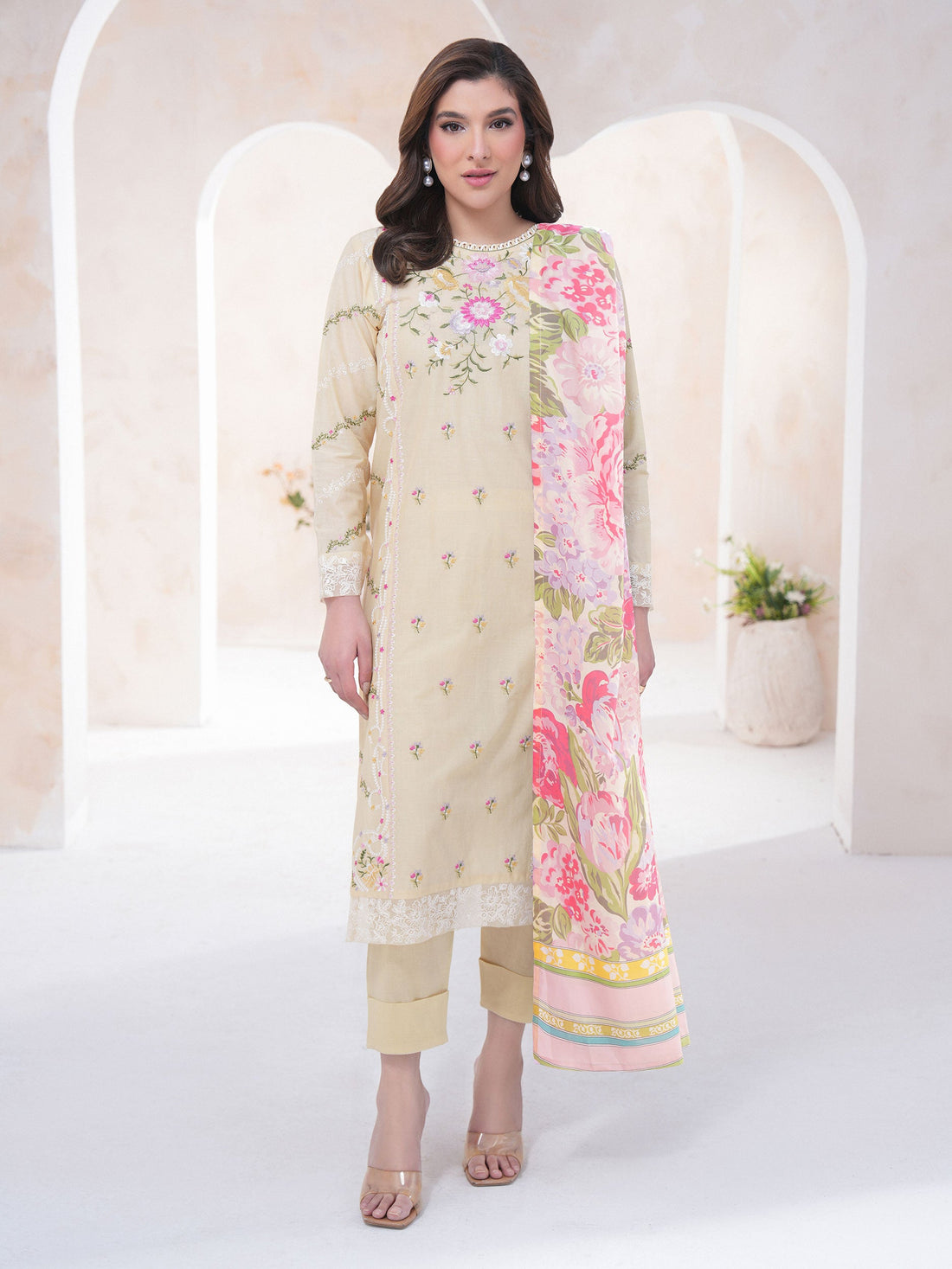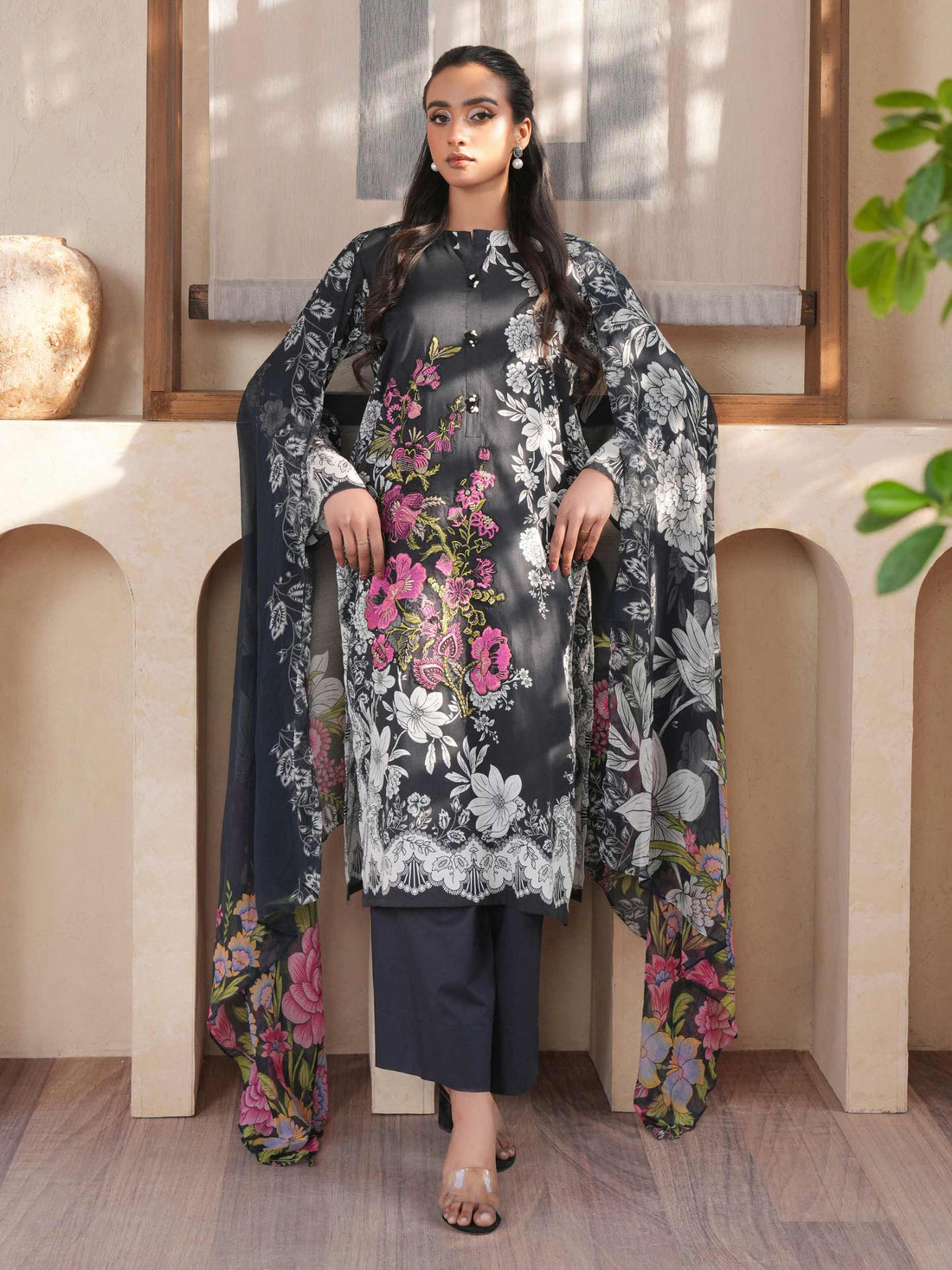 Shirt Printed embroidered shirt 1.83 M Fabric: Lawn Dupatta Printed dupatta 2.5 M Fabric: Monar...