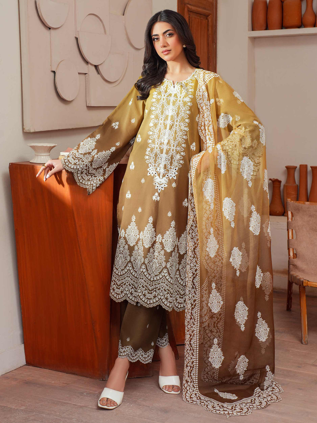 Shirt Dyed embroidered shirt 1.83 M Fabric: Lawn Dupatta Printed dupatta 2.5 M Fabric: Chiffon...