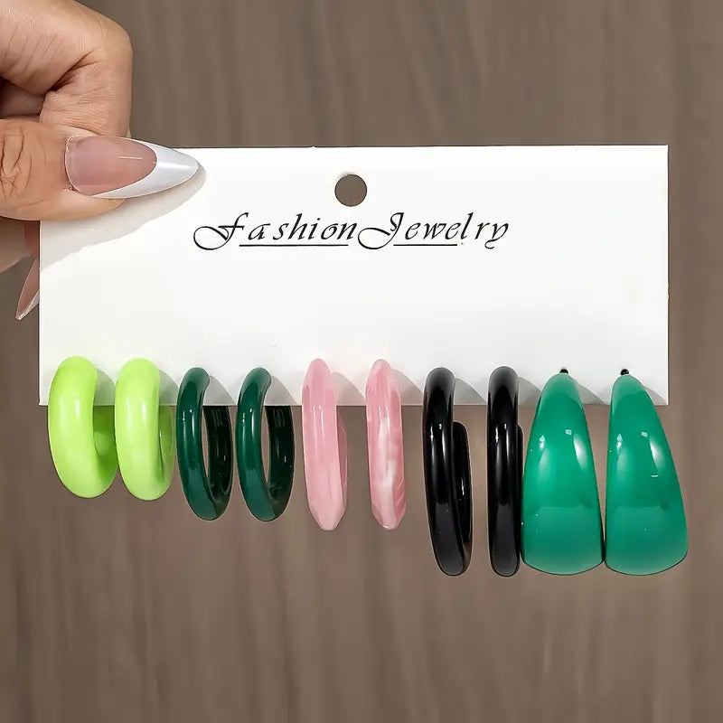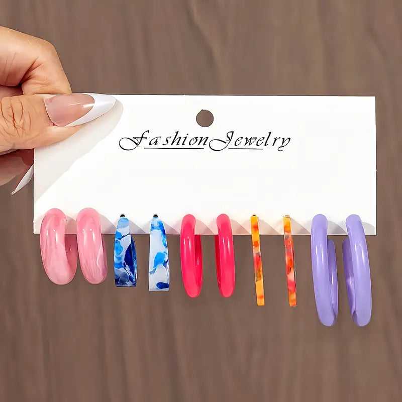 5-15 Pairs of European and American Simple Fashion Multi-color C-shaped Earring Jewelry Set