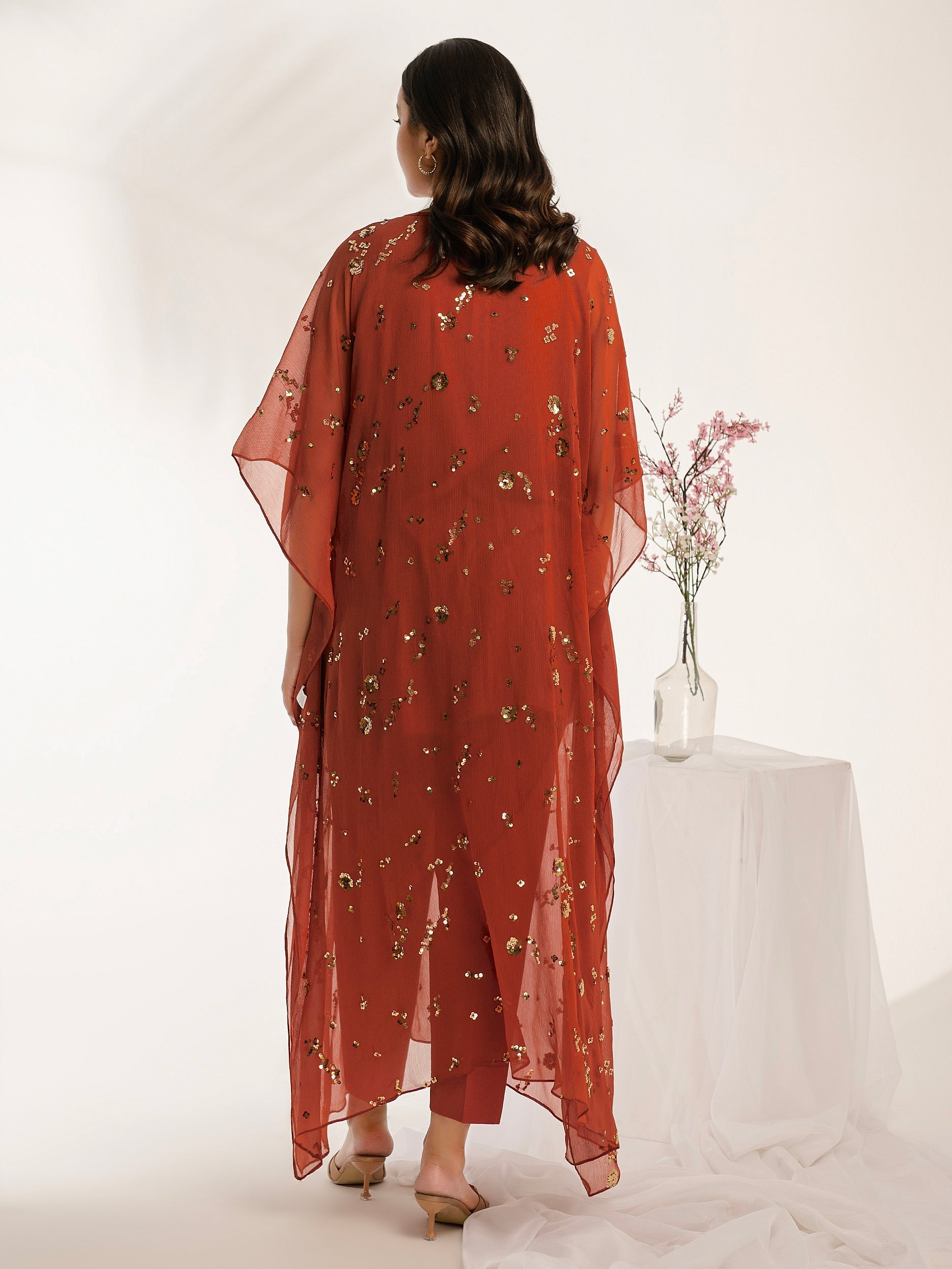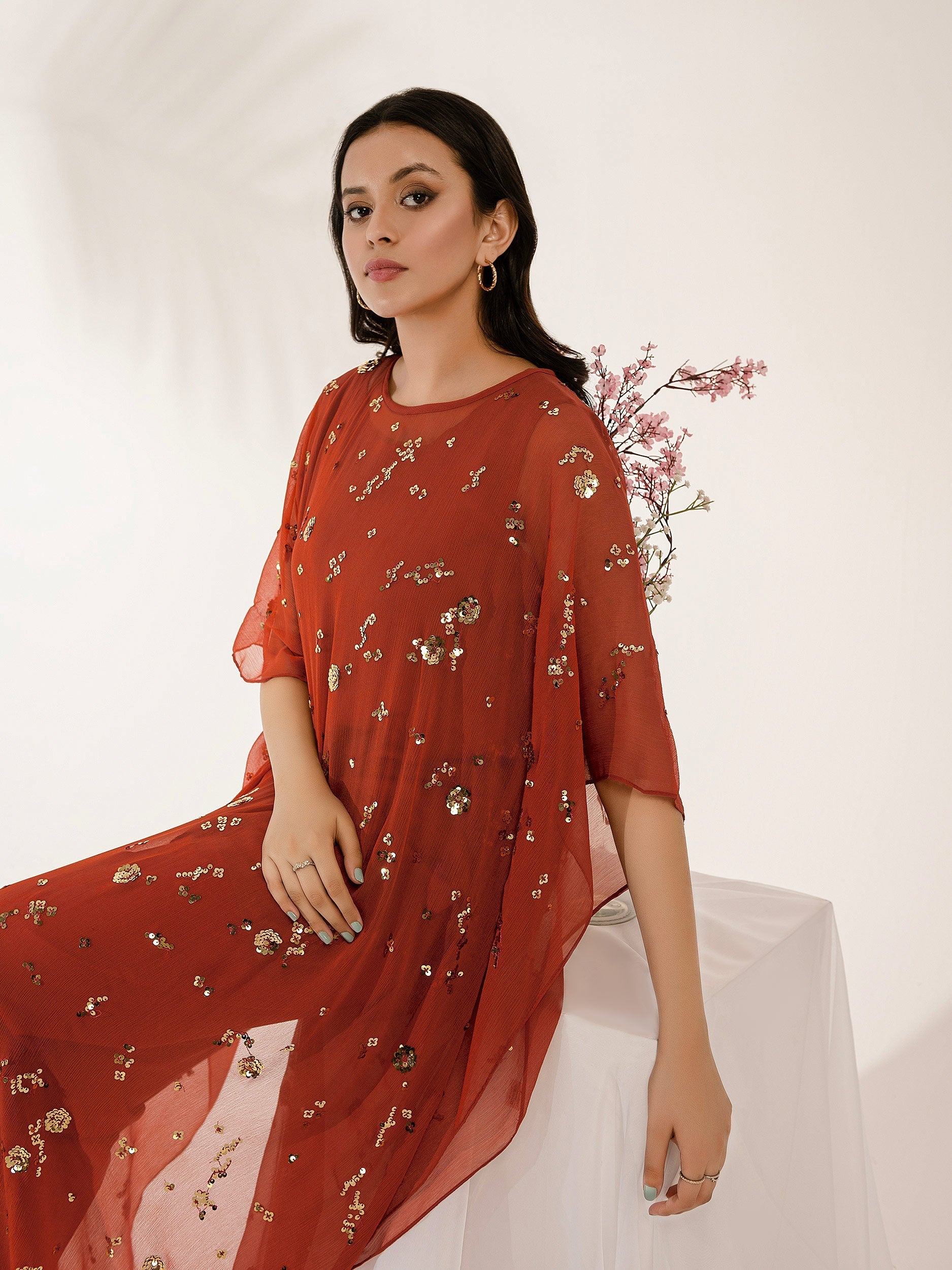 - Dyed kaftan with sequins embroidery