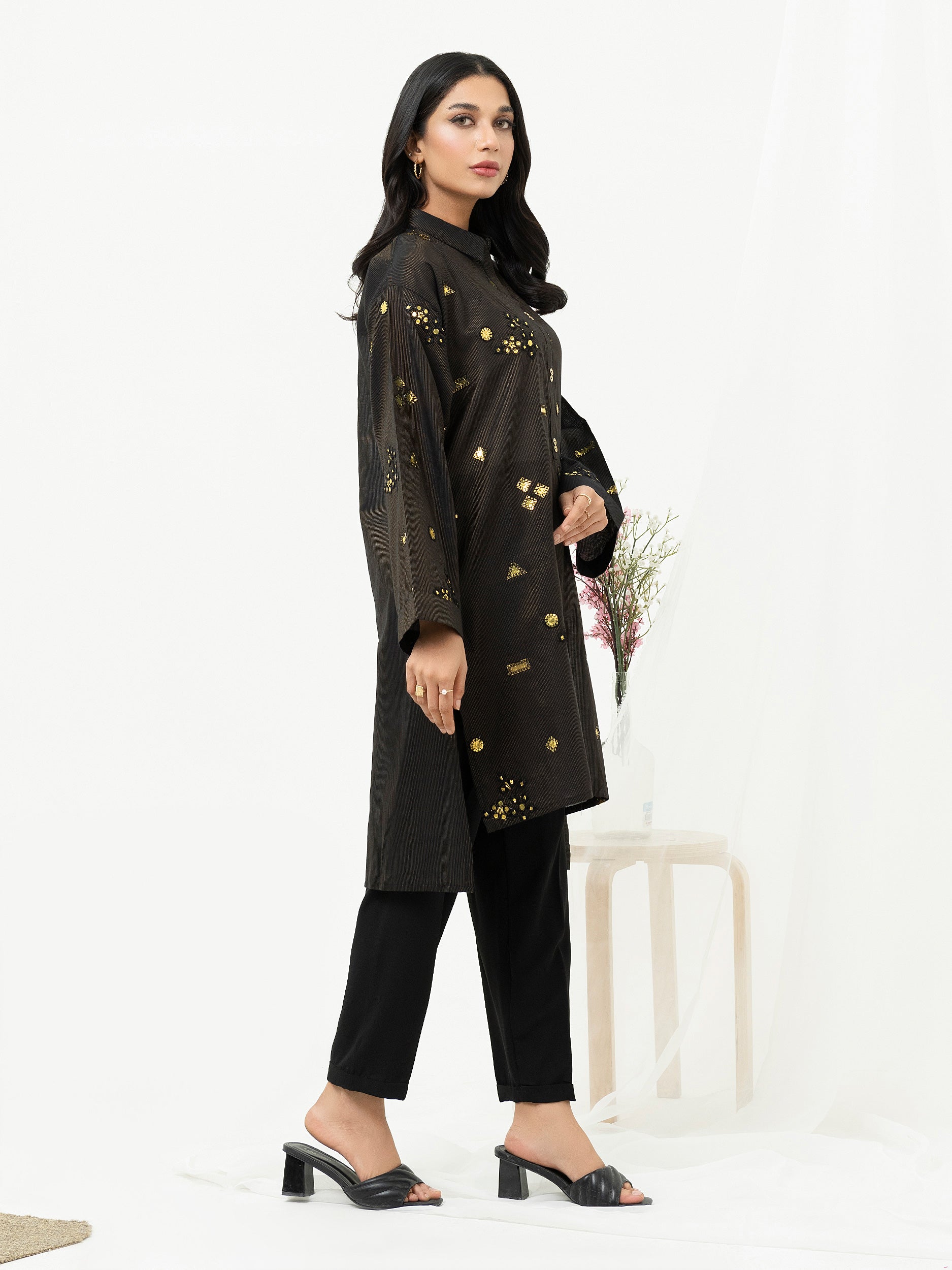 - Button detailing on placket