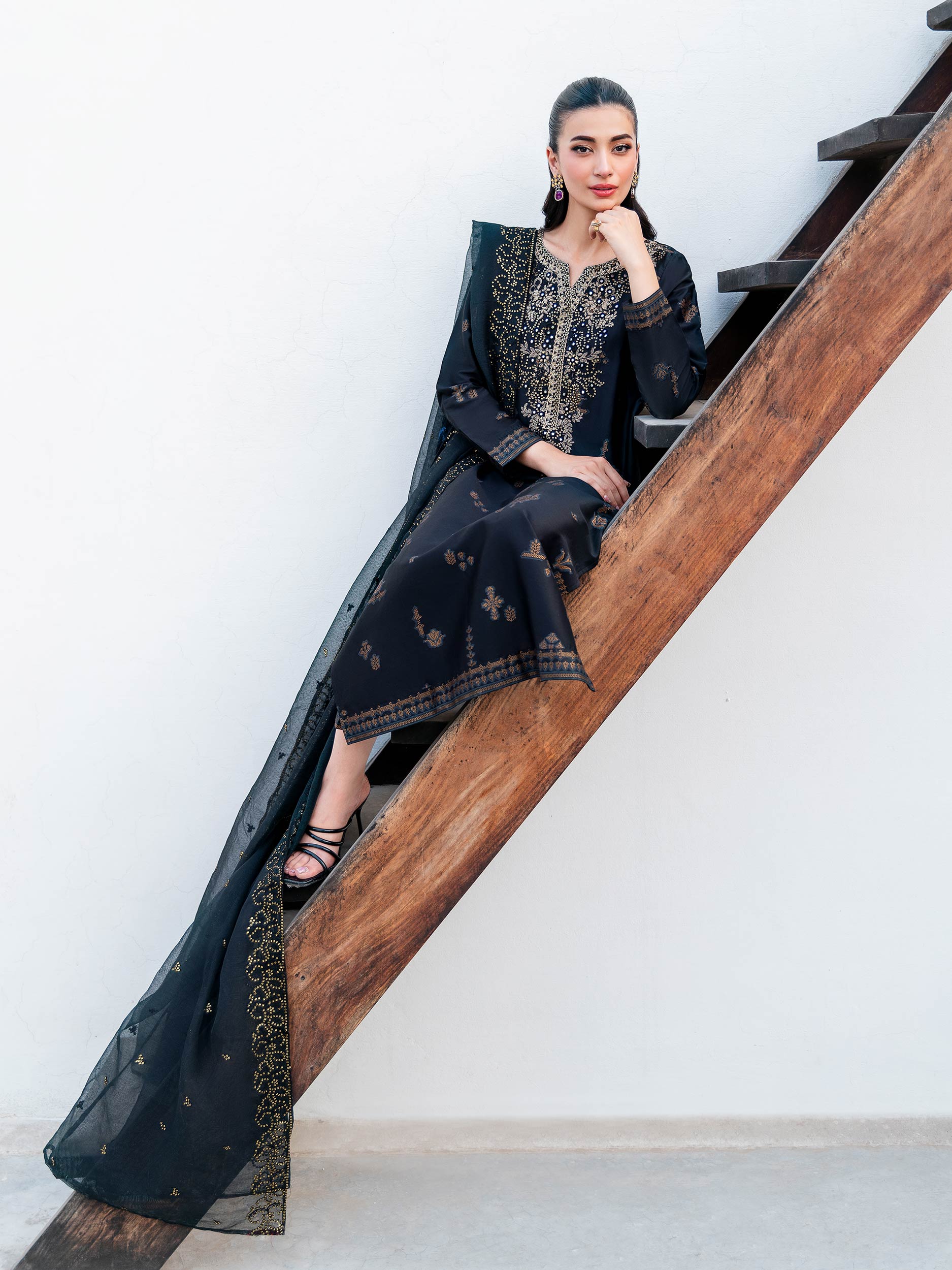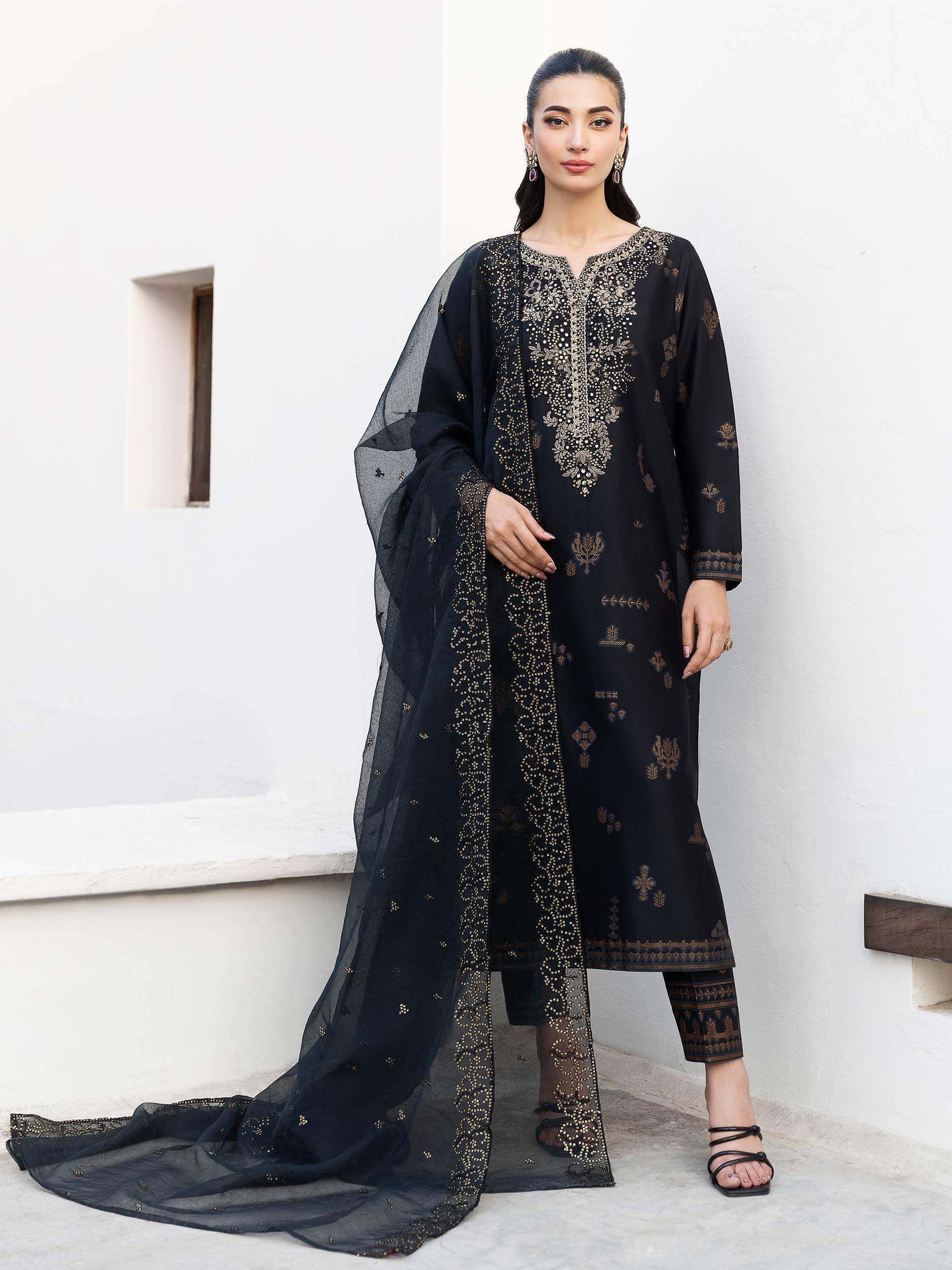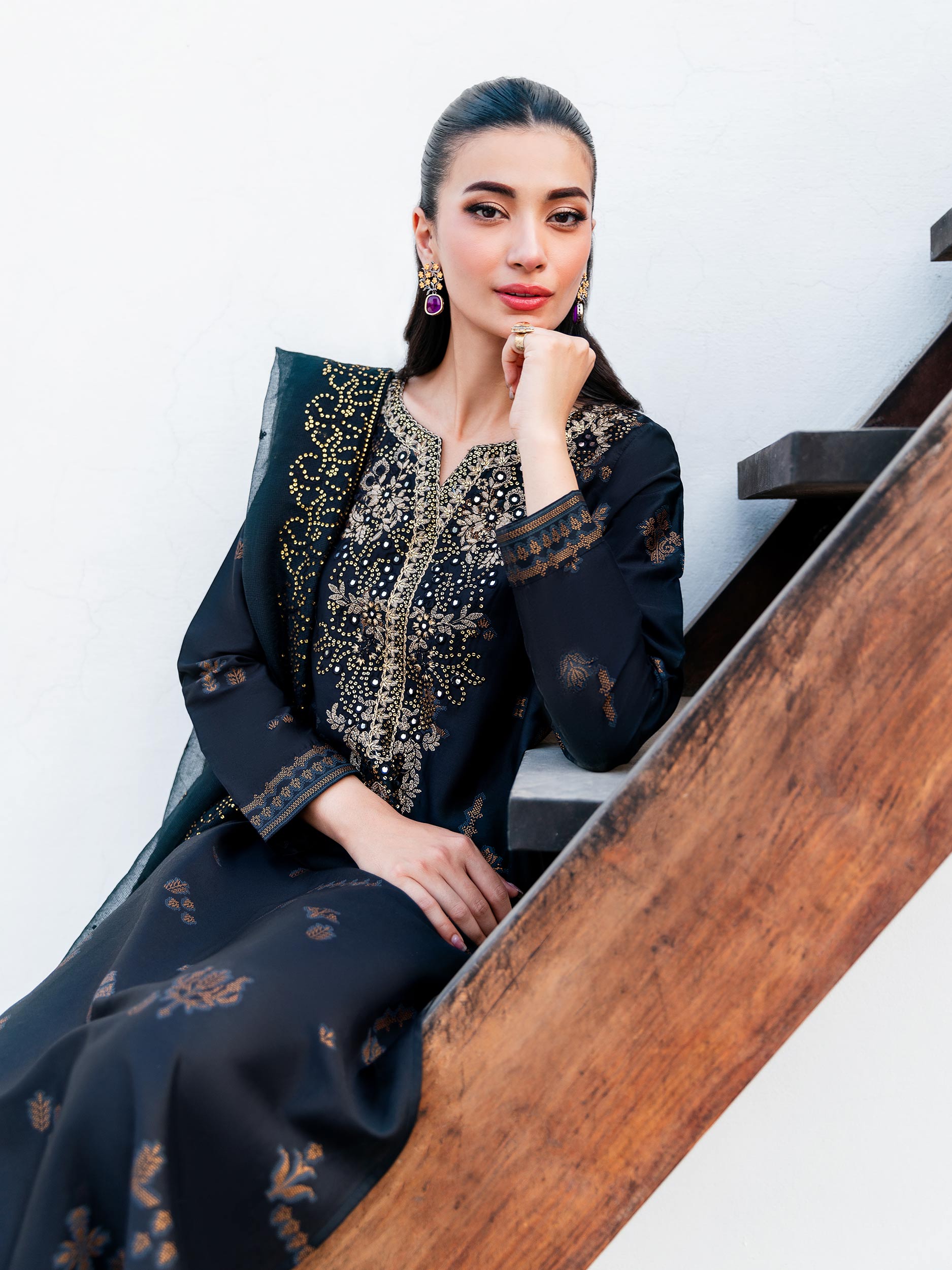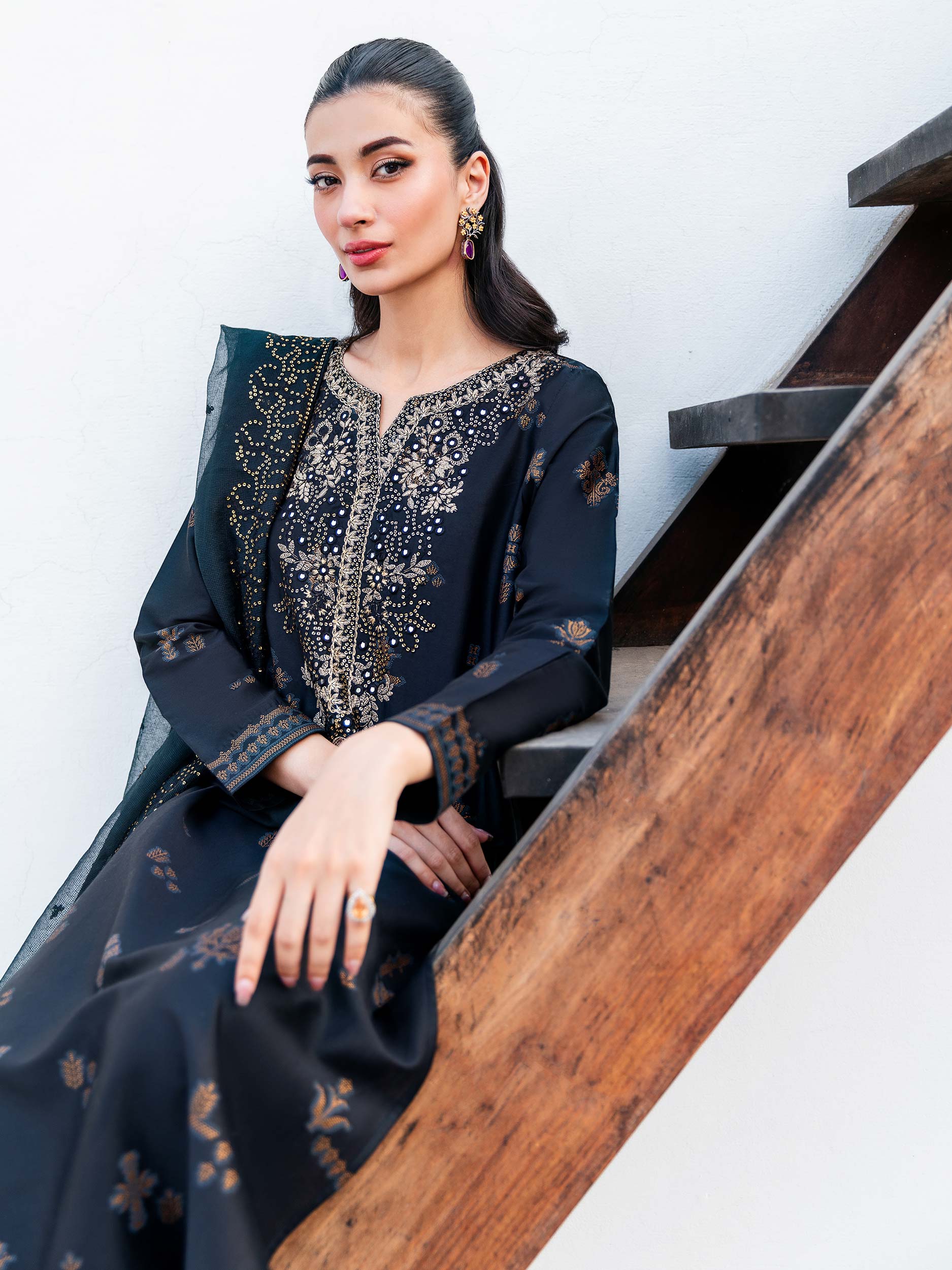 3 Piece Satin Suit-Embroidered (Unstitched)